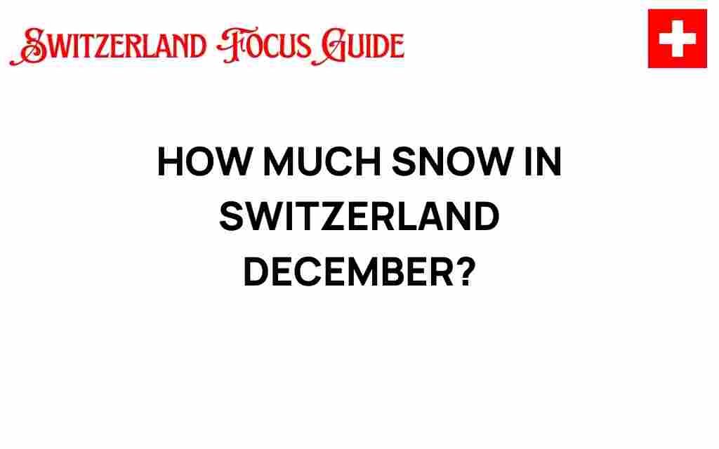 The snowfall in Switzerland during December can vary significantly depending on the region. On average, the Swiss Alps receive substantial snow during this month, making it a prime time for winter sports enthusiasts. Here are some general statistics to paint a clearer picture: